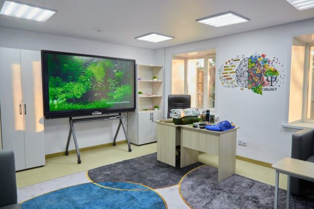 Особое внимание уделено цифровизации служебного пространства. Внутри здания оборудованы учебные классы с интерактивными панелями, комната боевой славы, зона психологической разгрузки, а также установлены большие LED-экраны для отображения распорядка дня и подачи команд. Эти технологические решения способствуют повышению эффективности учебного процесса и укреплению воинской дисциплины.